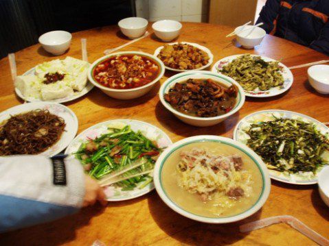 如果你上网找攻略,你会发现,网上的攻略一般都会说,旅店是供饭的,我估计那是以前,起码我们去的时候只提供早饭,午饭晚饭都是自己解决的,可以吃自带的食物,也可以在你所住的旅店点菜,价格一般是别地方的两倍。如果你不想自己点菜,可以一顿交30块钱,应该是三菜一汤的搭配,旅店会帮你准备好,你直接吃就可以了,但需要大家拼桌,6—8人一桌。