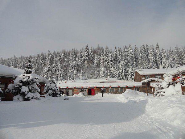 3、从雪谷穿越到雪乡中间有两个收费的地方,一个是雪谷门票:35元/人;另一个是雪乡门票:80元/人,在山顶有个小屋子,里面有两个当兵的,负责查票。