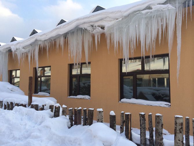 下山到旅店的时间才八点半,我们吃了点早饭,在旅店里休整了一上午,实在是太冷了。直接把被子裹在身上,喝着热水,这才缓过来点。吃了点午饭之后,我们就去滑雪场了
