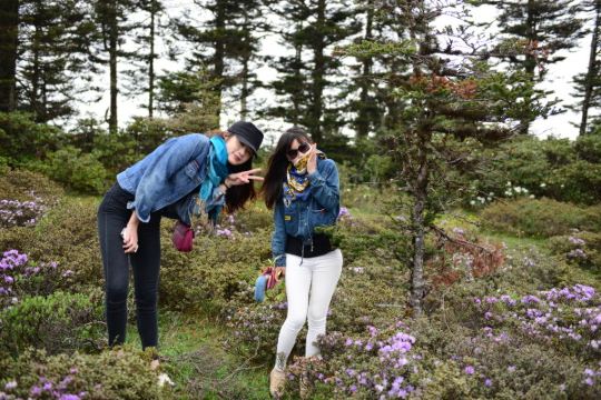 遍地的山杜鹃。矮小灌木状。。