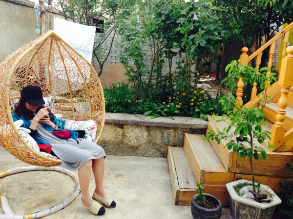 昨晚的烧烤味还在呀,我的灰哥呀,给你喝大啦~一早被满园的阳光叫醒~~~~伸~~~懒~~~腰~~~~~起来。客栈的咖啡屋,很欧式呀~吃了一个早餐~