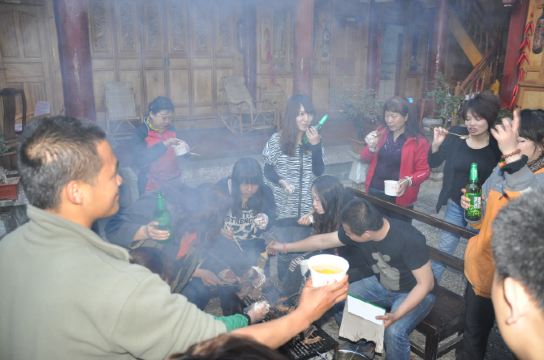 烧烤起来,邀请我们一起加入,(讨厌,怎么知道俺们流口水了呢)。灰哥我们一群人,喝啤酒,吃肉~看来又是要肥的节奏呀~后来我才慢慢了解灰哥,广西桂林阳朔人,跟他的兄弟阿飞,石头在丽江弄客栈,他们都是背包客,经常会去西藏,尼泊尔等地方徒步,好羡慕他们呀~那天晚上我们每个人都聊了自己的旅行价值观,畅想着未来去哪旅行~他们的故事真实挺感人的~旅行的故事,丽江的故事,开客栈的故事,都是挺励志的。有准备来云南的朋友可以微灰哥哦(mohui89) 吃喝玩乐都可以帮你的老丽江~对于自由生活驿站的男人们来说,总结一句话:穷人家的孩子早当家!
