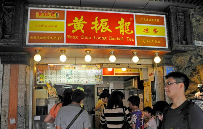 凉茶也是广东传统的特色茶饮,如今满街头的加多宝和王老吉的广告,还有那句“怕上火喝加多宝”也让广东以外的人对凉茶不再陌生,凉茶可以说是岭南饮食文化中的重要一环。凉茶其实并不是茶,而是中草药熬出来的药汤,因而也是有一定的药性,可以清热解暑。虽然我们每天饱受加多宝和王老吉广告的狂轰滥炸,但在广州人心中最正宗的凉茶品牌还是黄振龙,在广州的大街小巷遍布黄振龙凉茶,店铺小而简陋,不仔细看甚至会忽略,但是就是这样的一家店铺已经入选了国家级非物质文化遗产,更让吃货满意的是他家的凉茶品种多,价格也非常便宜,3-5元一杯,茅根竹蔗水、癍痧凉茶、罗汉果五花茶都是大家强烈推荐的,不过我一惯不喜凉茶,总觉得有一股中药味,自然也就无福消受了!