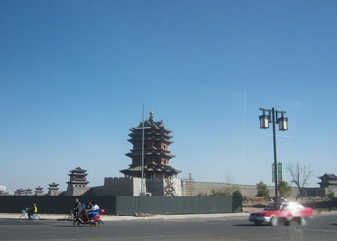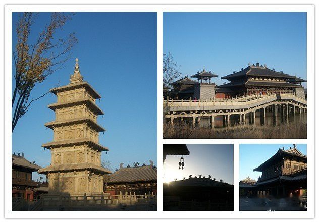 石窟旁边是陈列馆和仿古建筑群,时近傍晚,夕阳照着这北魏风格的寺庙特别有感觉,游客这时已稀少了,我们在里面拍了很多照片,美!
