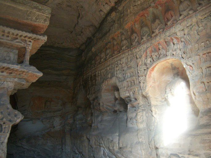第一窟就让我觉得惊讶,没想到风化破坏如此严重,有些小佛像残缺得就只剩个石头架子,还有些斑驳的颜色残留,透露着历史的沧桑。接下来越看越是震撼,十几米高的佛像、密密麻麻布满整个石窟内部空间的石刻图画,向我们展示了古人的虔诚和智慧。遗憾的是,据说是最为精美的9-13窟封闭维修,虽然没看到,但希望现在的人能好好保护这些1500多年前的宝贝,一代代传承下去。