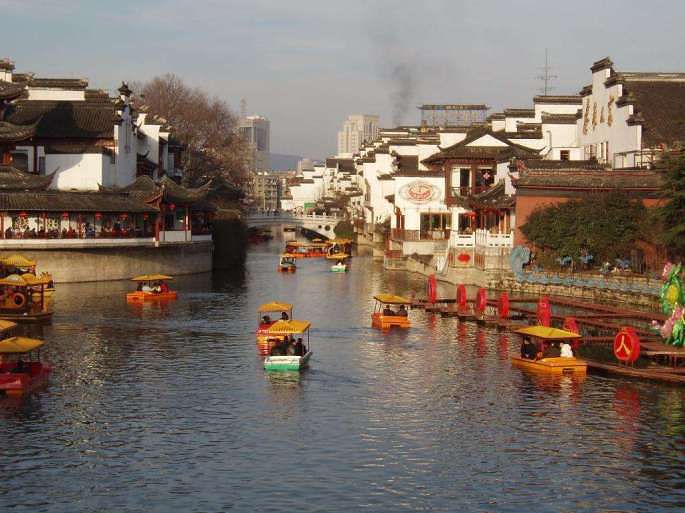 十里秦淮千年流淌,六朝胜地今更辉煌,相传秦始皇东巡时,望金陵上空紫气升腾,以为王气,于是凿方山,断长垅为渎,入于江,后人误认为此水是秦时所开,所以称为“秦淮”。