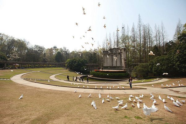 中山陵音乐台并不大,也谈不上雄伟壮阔,只是幽静中更多了几分庄严,这里白鸽成群,绿树成荫,让人觉得大自然的安宁。中山陵音乐台洗尽铅华,显得有几分斑 驳,几分苍老,却仍然静静地傲立于高高的中山陵东南一隅,卧在中山陵园万顷绿波之中,像一幅丹青,一首名诗,一支悠扬的歌,一颗锃亮锃亮的星星。《建国大 业》里蒋经国和蒋介石的一段对话就是在这里拍的。