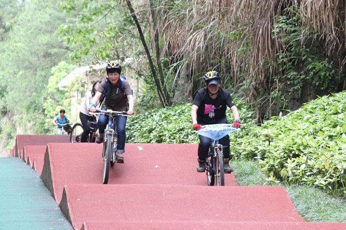 :是的!有几个坡特别陡,如果控制不好就很容易上不去或者撞上前面的车,大家骑行要注意唷,但是过了这个坡有一个特别爽的下坡,那种感觉,真是觉得青春永远陪着我们,特别想大声尖叫!
