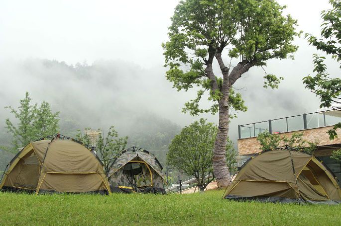 这就是我们住的地方啦,帐篷!但是晚上非常不幸的下雨了!虽然起床以后衣服都湿了,却依旧没有影响我们第二天的好心情。