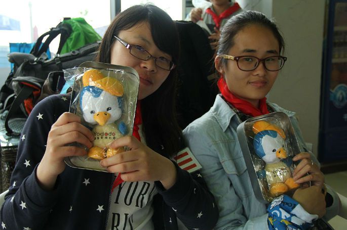 就这样,90先抽了B,然后80是A,剩下的70拿了C。晶晶运气很好的抽到了花开想要的多多公仔,80后拿到了多多日历,而70后则是抽到了多多帽子。