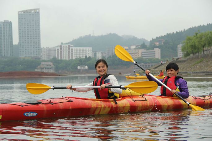 教练说,皮划艇的意义就在于我们要保护好水源,因为我们人的大部分时间都是花在了陆地上,只能俯瞰水面,坐上皮划艇,我们就能和水更加的亲近。教练还说,我们活着,其实钱多钱少无所谓,我们主要是做自己喜欢的事情,让自己过得开心。教练还说,这么多人来体验皮划艇他很开心,因为平时没有人他就自己一个人在水上滑,还是有些孤独的。