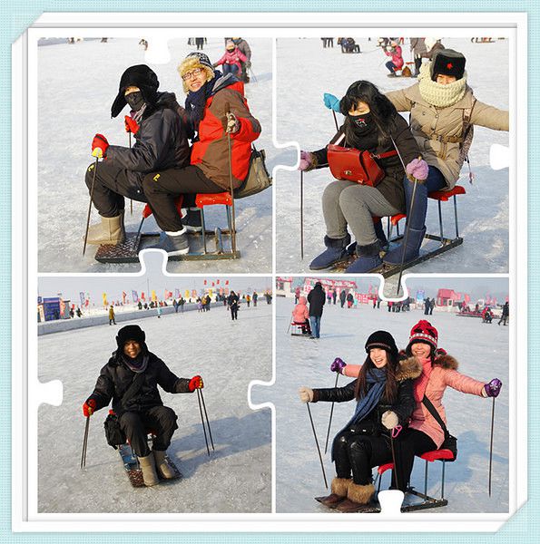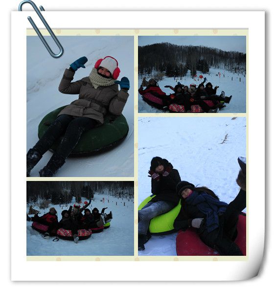 最后,我们选择了滑雪圈。上次划这个时候,可能还是小时候,爸爸带着我在冰上瞎玩吧。而蚂蚁带我们来的这家是有东升最长学道的一家,一百五十米的滑道真是体验了一把什么叫刺激丫。苦逼的是,本来可以拉着上去的车由于停电不能走,自己刺激的滑了下来,还要拖着重重的圈子爬上去,算是先试玩了一下穿越的赶脚。体力不支,玩了三趟 我就GAME OVER了。在下面看着他们继续玩耍~