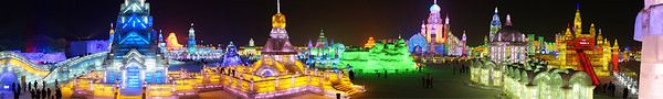 真的是超体能行走了,在松花江就玩了三个多小时,一会回去收拾一下,接着下一站。冰雪大世界~先来两张全景 让大家饱饱眼福~