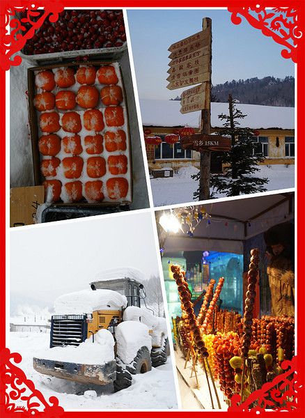 雪乡很明显多了一丝丝的商业气息,而且也没有多大其实。也有很多商户,卖冻柿子,冻梨,冻枣,糖葫芦,还有冰棍遍地卖。
