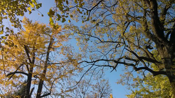 金秋时节,著名的“银杏之乡”南雄市坪田镇已经进入采摘期,日前,记者走进坪田冯屋村,触目所及都是一片金灿灿、沉甸甸的银杏缀满枝头的丰收景象。