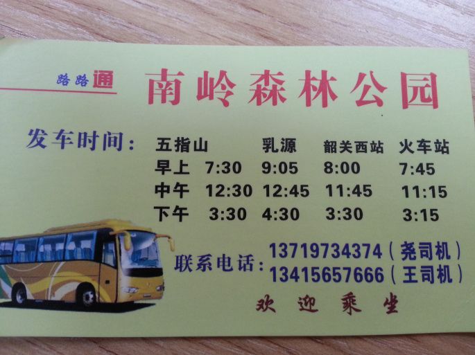 (到南岭森林公园的车每天就只有三班,韶关到乳源的班次很多。)