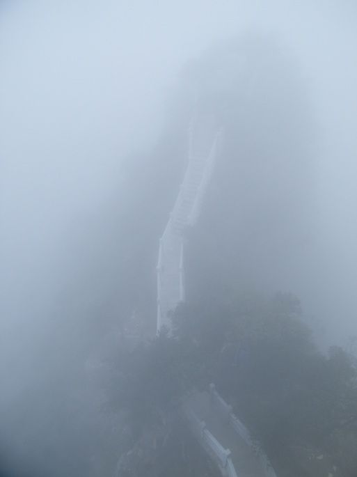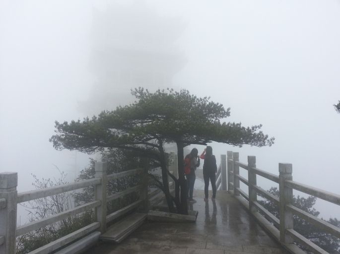我们从瀑布群入口出发,到出口用了1.5小时左右,然后直奔小黄山。由于我们打算在森林公园玩两天就索性全程徒步了。从瀑布群入口在到小黄山入口要走好长的公路,没事是可以慢慢走啦,就是费时,花了1个多小时才到山上入口。后来花了3个小时左右才走完小黄山。路上没啥好看的,最美就是能在云雾间行走,呵呵,最高处有个3层楼高的亭子,内饰还在建设中,不过走到上面走廊处,真有腾云驾雾的感觉,棒极了,风很大,差点把俺吹跑