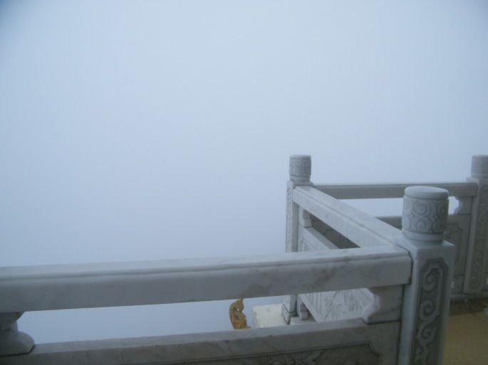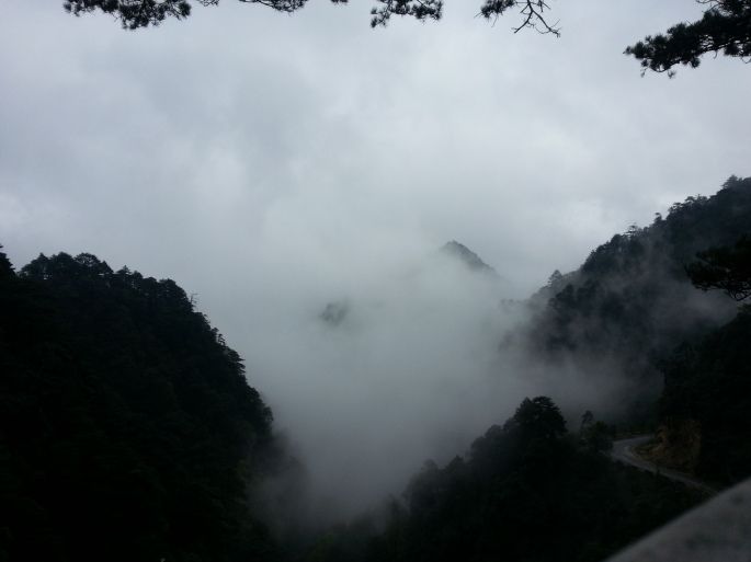 风很大,偶尔把云雾吹走一点,隐隐约约能看到底下的小道。