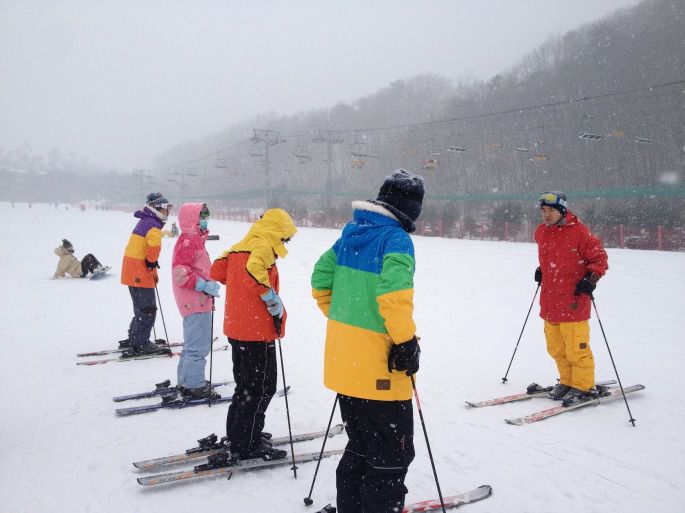 因为入住SA SEOUL酒店的关系,决定参加SA的滑雪团,对于初次来韩国语言不通,路又不熟的我们来说真的很方便,一早9点直接在SA办公室集合,点名都到齐后就跟著SA员工一起上车出发啦~这天的天气狠好,平日的关系路上也没有塞车,带著雀跃的心情咻一下的一个半小时左右就抵达了,