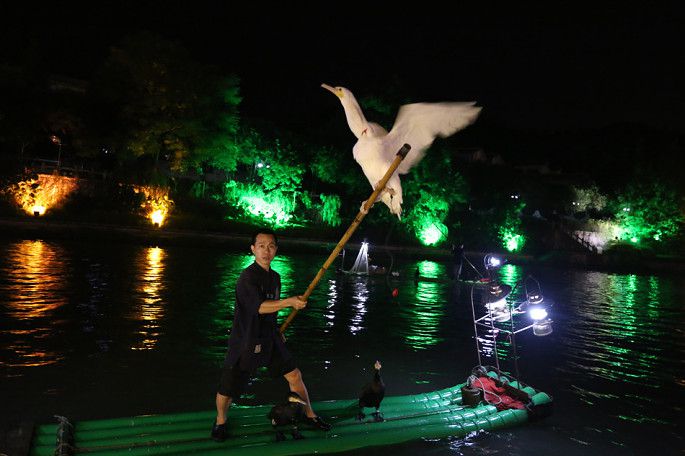两江四湖整个游览过程中表演很多,这个是一个捕鱼的表演,叫“桂湖渔火”。