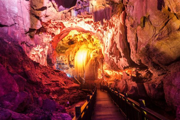 特别值得一提的洞的最里面有个穹顶灯光表演秀,听导游说是全国首创的,看完以后真的感觉很震撼,这是一种灯光投影节目,还有真人表演,不用戴什么3D电影都有很逼真的效果。