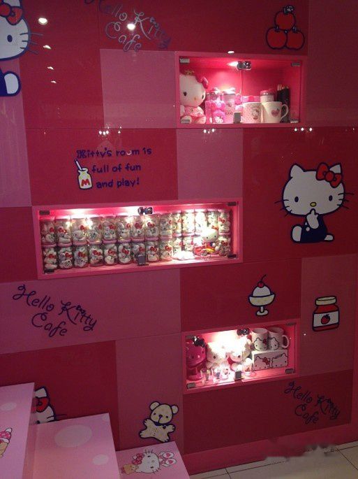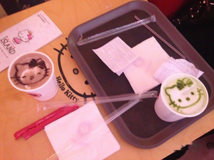 男孩要有创造力,去自由市场,女孩当然就必去“Hello Kitty 咖啡屋”。我们又一路打听着找到了,人很多,装修很有特色,孩子们果然很喜欢,这时也累了,就当是歇歇脚了。