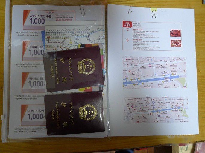 要是在沈阳,可以直接去韩国旅游发展局驻沈阳办事处(中国辽宁省沈阳市和平区和平北大街69号总统大厦C座703号 )领取一些资料,最有用是T-Money卡(卡内有3000韩元)、星儿的《韩国自由行》(不带别的攻略去的话,这一本就OK)、韩国旅游地图(有点大,最后没用上)、有《韩国8大魅力之旅》(后面的地图更小,而且标注很详细,好拿好用)及乐天和新罗免税店的优惠券等。