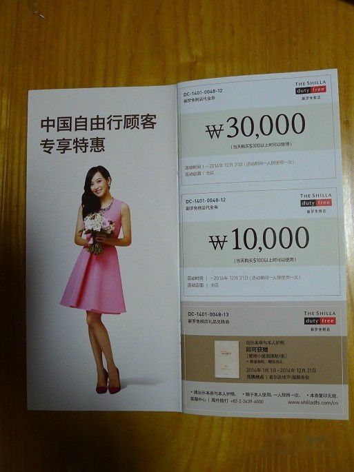有人说新罗的东西品种好像没有乐天的多,但我没发现,觉得新罗实体店更值得逛。新罗的优惠很多,具体要看当月的活动。我们去时:送打车钱,购买一定金额又可以用抵用券,还按额度赠送南山塔门票和锁及爱宝乐园的门票,很是大手笔。