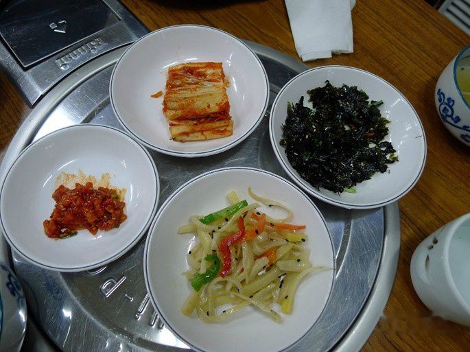 这里没有收获,天气太热,在又去路过的“mango six”家吃了喝了后,我们开始向新村出发,寻找攻略上必去的“新村八色烤肉”,按攻略所说,在地铁2号线240新村站(地下站)3号出口出来,看到爱丽小屋ETUDEHOUSE就右转,然后沿左边路走了一段路就看见了。进去直接点8色烤肉即可,包括八块肉,桌子上的海鲜汤是送的,蔬菜和泡菜全部是赠送,等于只要30000韩元吃个8色烤肉的套餐,其他全部赠送,这顿饭我们8个人点了两份,也就是30000*2=60000韩元的套餐。肉也很好吃,但真心说,没有“王妃家”的烤牛排好吃。但综合起来,这家的性价比更高些,很适合普通人来常常吃。