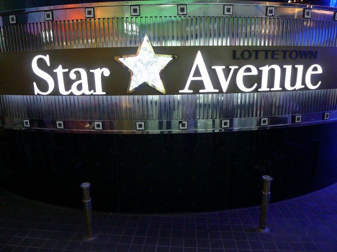 饭后,去乐天免税店逛了下,什么也没有买到,各品牌基本不打折,货品也少,人很多,东西像抢一样,还不如网上买。我们逛了一会儿,就下到一楼看了看星光大道。
