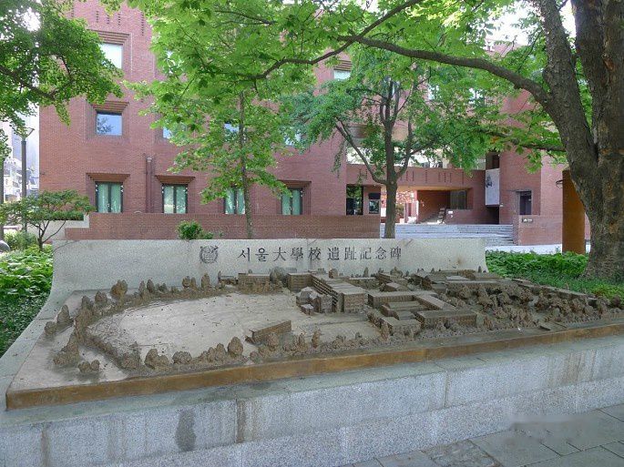 我和儿子,早上7点多起床,没吃早饭就去壁画村,很好找,酒店门口是4号线424明洞站9号口,下去坐车到4号线420的惠化站2号出口出来,沿着出口走30米左转,两旁是红色的建筑,有写着“大学校遗址纪念碑”。