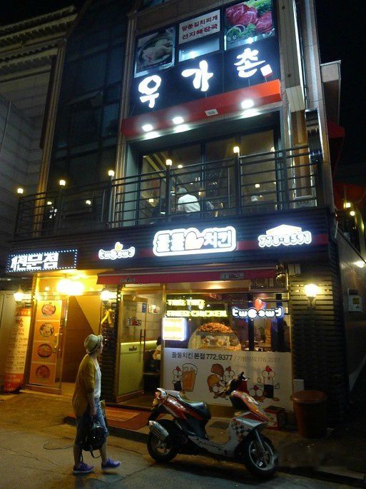 从首尔塔下来,已经晚上9点多了,孩子们都饿了,于是去昨天我们去过的“twotwo”炸鸡店吃炸鸡。有了昨天的经验,今天直接点原味鸡。