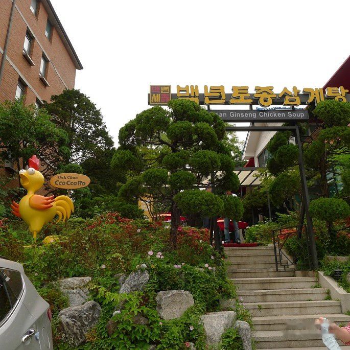 从北村出来,又累又渴,必须休息。于是就在北村下来的大马路旁,我们选择了一家相当有特色的饭店,吃参鸡汤(13000韩元)、炸鸡(16000韩元)、绿豆饼(8000韩元)。坐在韩式的木地板上,很有feel。儿子高兴地唱:就是这个feeling feeling 倍爽!