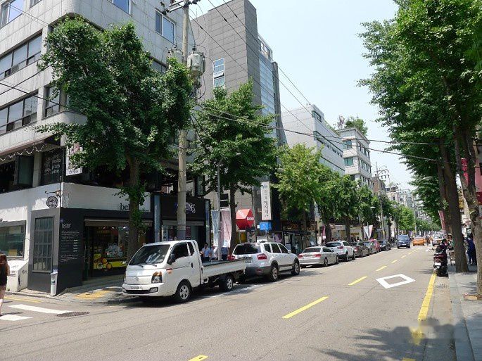 饭后,去明洞地铁站坐地铁4号线,坐1站地到4号线的423忠武路站转3号橙色线到337新沙站8号口出来,直走,看到J-Tower的大楼左转,就进入了新沙洞林荫道。