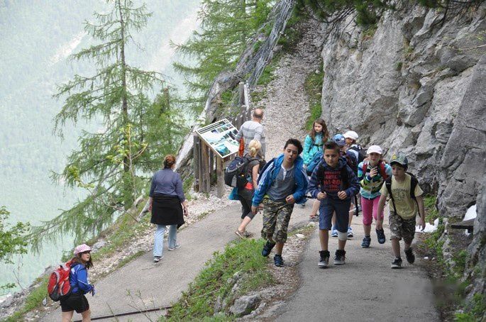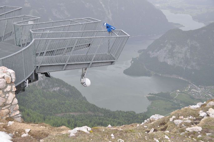 远处,阿尔卑斯山脉连绵不断。转过一个山头,来到了景点five fingers。几个小大孩顽皮地,在fivefinger上,摆出各种各样的pose,真为他们担心。有畏高的朋友,一定要挑战一下,因为五个像手指样的铁栏,悬空伸出几米。下面则是万丈深渊哦。
