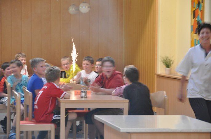 晚饭,没想到,给了我一个惊喜。原来这里有个孩子的夏令营。第一次与外国的夏令营孩子一起吃晚饭,兴奋啊,更意外的是,其中一个孩子过生日,整个餐厅洋溢着暖暖的,家的气氛。