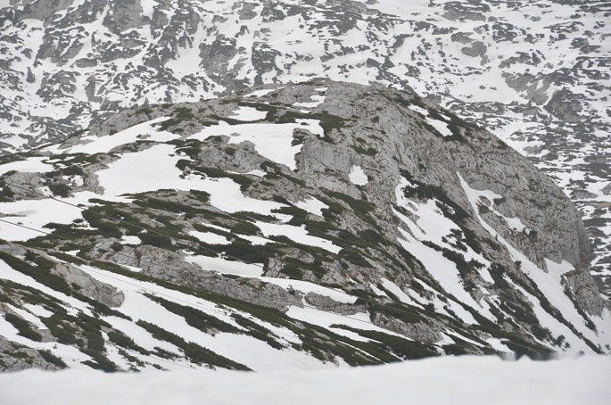 从洞里出来,跟着**,走到了缆车站(我买了套票)。随着不断的爬高,美景一一呈现,远方的小镇,也在薄雾里渐渐透露出来。出了缆车,哇,雪峰,意想不到啊!又是一个惊喜。原本以为只是一座山,没想到,是一座连绵的雪峰。
