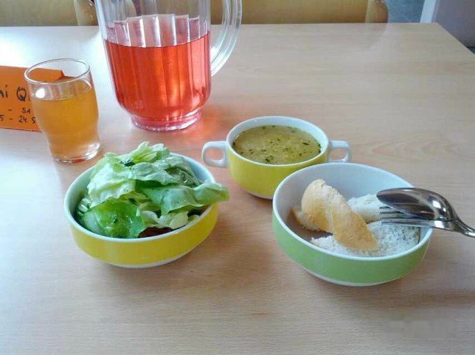 心里不知怎么了,泛起了不舍的念头。人的一生,有多少次这样的插肩而过。还在想着人与人的离别,在接待处,传来了熟悉的乡音。我们的同胞,一个念头闪过,加紧脚步来到休息室。两位美女在商量着今晚吃什么。又是一个惊喜,那么荒远的地方,也会有同胞来,有点不可思议哦。互相寒暄后,知道她们是公派留学生,在巴黎上学。几个人趁放假,打算游历欧洲。她们是打前站的。我告诉她们附近没有餐馆,要吃就得去小镇,而晚班车是下午5点,已经木有车回来了,在她们不知所措的时候,我说我这有几种火腿片,面包,酸黄瓜,小西红柿,缘份一场,不嫌弃,就一块吃。听我这么说,她们也拿出一些烙饼,一起分享了这难忘的“晚宴”。