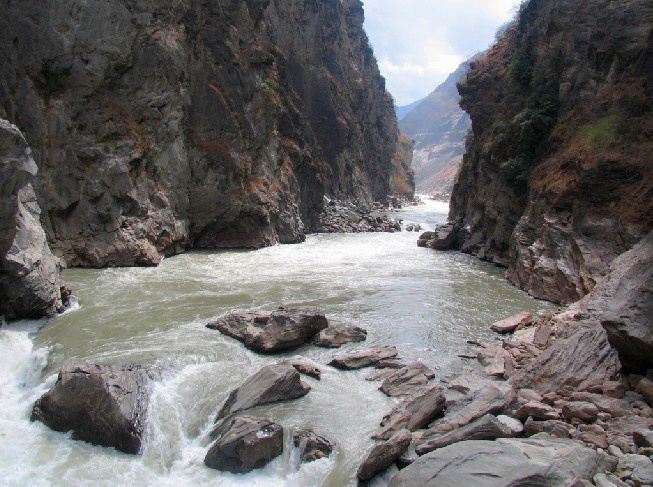继续赶路,很快我们来到了赫赫有名的“虎跳峡”,沿着栈道一直往里走,一路上会有专人提醒你靠着山脚边走防止落石,本来不怎么害怕的,被默灰一提醒倒开始紧张起来,不时地会抬头往上看看有没有石头之类的落下来。越往里走,江水奔腾的声音就越来越响,穿过一个山洞,再往前走点,很快就到了终点,也是虎跳峡最壮观的地方,汹涌翻腾的江水好似要把人卷走一样,听这里的工作人员介绍,这里曾经是很多探险的人想要漂流征服的地方,结果却是来一个死一个,现在国家已经明文规定禁止这里的一切漂流活动。人类与大自然相比,终归是渺小的,花时间和精力去征服大自然,还不如好好地去保护大自然。