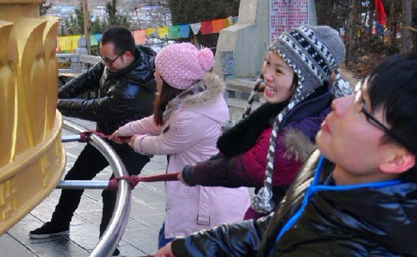 站在寺前让我忍不住按动快门将眼前的雄伟景观装入自己的相机,突然镜头里出现了一个小喇嘛,我咔嚓一下就把他装入了我的相机,还没有来得及欣赏一下,只听见小喇嘛笑嘻嘻的对我说:“三块”,这让我不禁一愣,还好我也反应迅速,我说三块可以,不过必需合影一张,他也没有异议,合影,付钱,成交!
