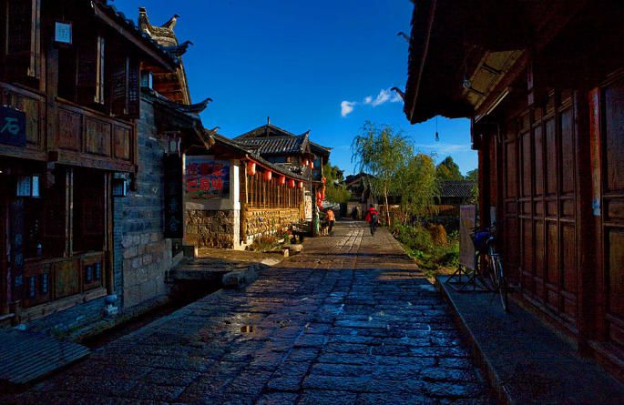 古城的水,有一个美好的名字,“玉泉水”,是雪山远嫁古城的女儿。是玉河水,赐予了古城柔情,水灵。我静静的站在水车旁,任玉泉水百转千回,进而流向深巷,伴随着游人来来去去。水车是古城跳动的心脏么?均匀如一的轮转。水车是古城的日历么?不分白昼的抚摸着玉泉水。然而,在古城,所有的想象都是幸福,同时又是多余。因为,古城,来自你的想象。