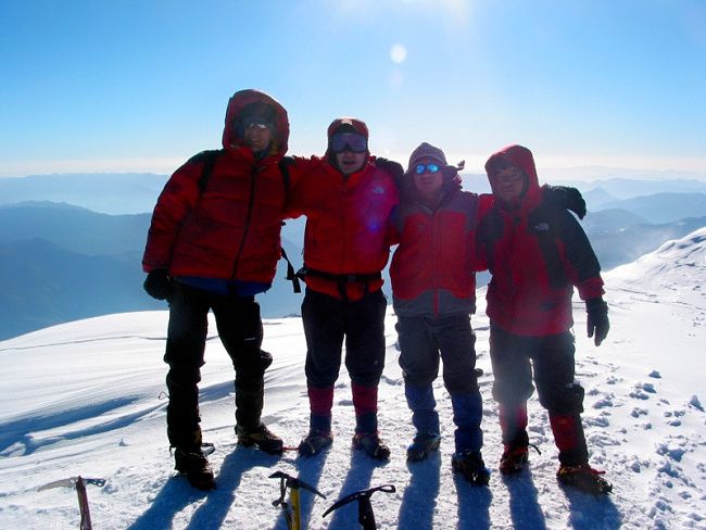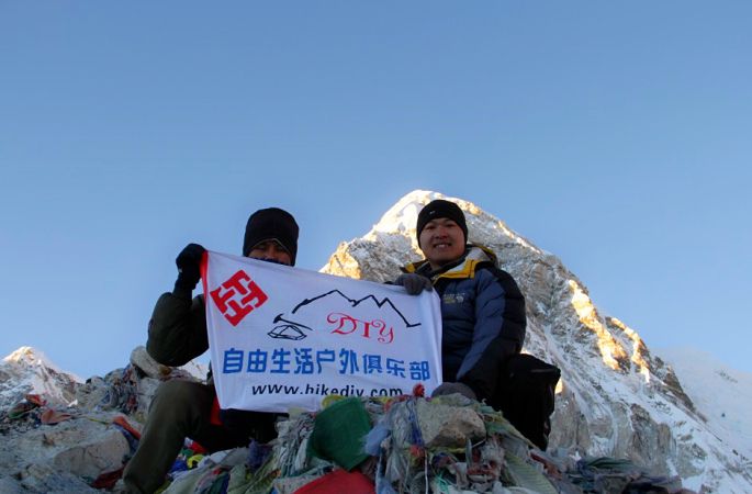 这时,不知老天是不是为了鼓励一下大家,突然拨开云雾,霎时冰川美景,跃然眼前,人们开始欢呼起来,于是本来打算往回走的,又鼓起勇气继续前进,认识的不认识的没有多余的力气打招呼,便相视一笑,互相鼓励。氧气罐在这时成了人们的精神支柱,不管有用没用,吸上两口便觉得像是注入了一股仙气,顿时又来了精神。到了山顶海拔4680米的地方,所有人开始抢着和这块标有海拔高度的木牌拍照,你速度稍慢一点就有人站过去了,看来这是个看你反应快慢最好的测试了。