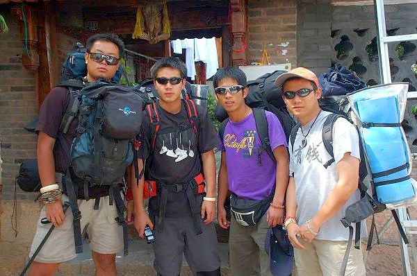 早上8点40分北京首都机场出发,直飞丽江,中途经停昆明一小时左右,下午一点半到达丽江的机场。丽江的天气很不错,空气中湿湿的感觉,可能是还没有过雨季的原因吧。来之前一直听说云南是高原环境,很多人来这里会有高原反应,我提着行李走出机场的那一刻,仔细地留意了一下自己的身体状态,看看是否有什么不适的感觉,结果一切正常,暗自窃喜。来接我的是客栈老板兼俱乐部负责人——石头和默灰,他们刚好来机场送人,知道我也到丽江!所以我就做了便车啦~~哈哈!他们是我在一本户外杂志上看到的,叫《人在旅途-开客栈》,他们客栈叫自由生活驿站,都是一群年轻人,崇尚自由,人文主义者!很开心认识他们,石头外表很斯文(我是说外表呀),后来发现他也是个纯爷们,喝酒气势十足呀!默灰就是一个典型的老幽默,有他在的地方,就会有人笑!