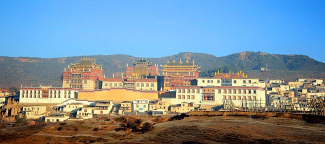穿过香格里拉县城,车子又转了几个弯,默灰带我们来到了有小布达拉宫之称得松赞林寺,(松赞林寺又称归化寺)红色的墙面,金色的寺顶,一派贵族之相,我们拾阶而上,动作快了会有点气喘,毕竟香格里拉市区都有三千一百多米的海拔,这个建在山上的寺庙海拔就更高了,寺庙的金殿正有喇嘛在“上课”,我们都无缘进去参观,于是便在寺庙外面转了转,留了几张影,有些到此一游的感觉。下山的时候看到几个小喇嘛在跳水,重重的两大桶水压在小喇嘛幼小的肩上,让人心生怜悯。