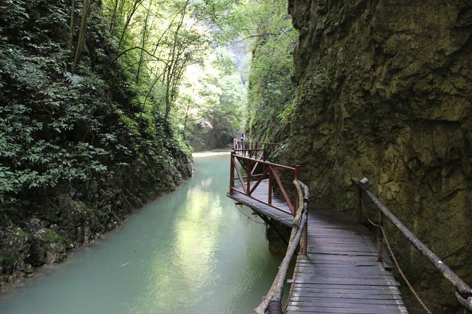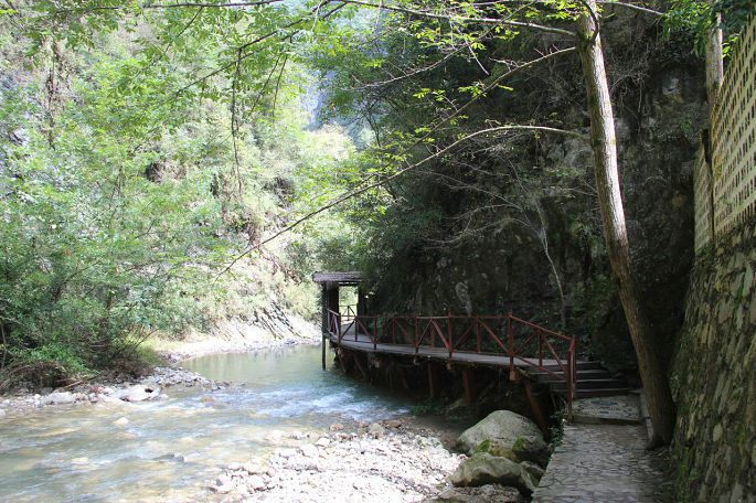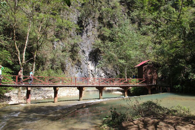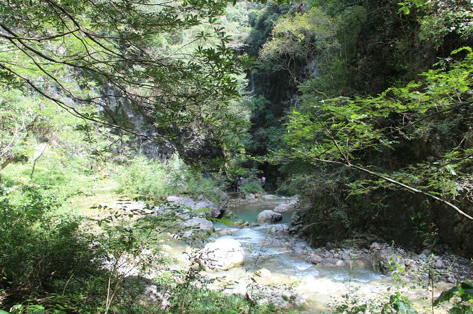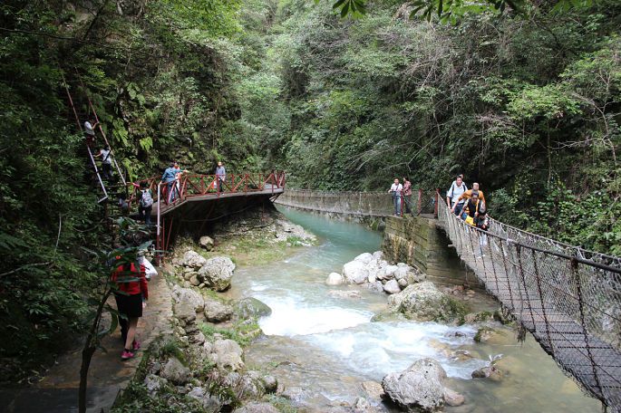 中坝大峡谷:门票60元。到时因下谷口车已停满,于是多行5公里将车停在上谷口。谷内游道基本没有起伏,老人小孩都可行走。下谷口有农家乐,基本没被社会污染,价位很实在。