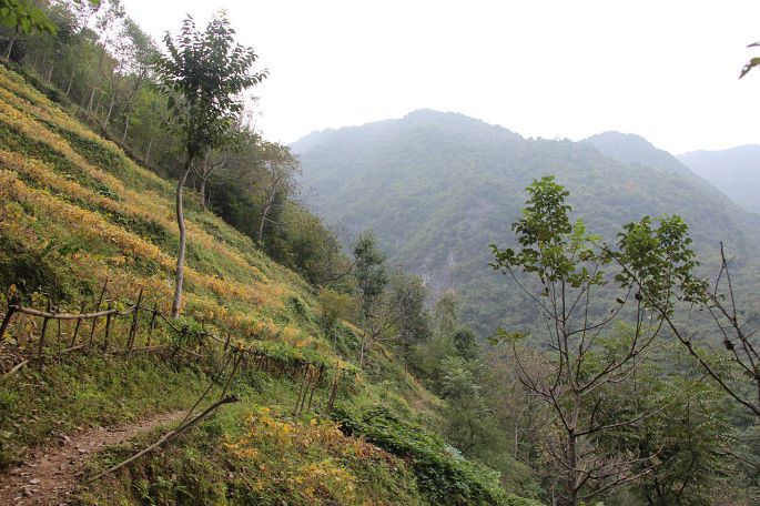 古汉源:沿G108到烈金坝村村部,路旁有一很大的桂花树,往右沿村村通水泥路转入上山。因路窄,此路不能会车,路尽头就是汉源村村部,在此车辆可以掉头。此段路约4公里。
