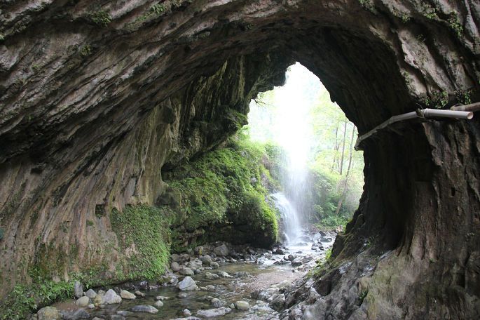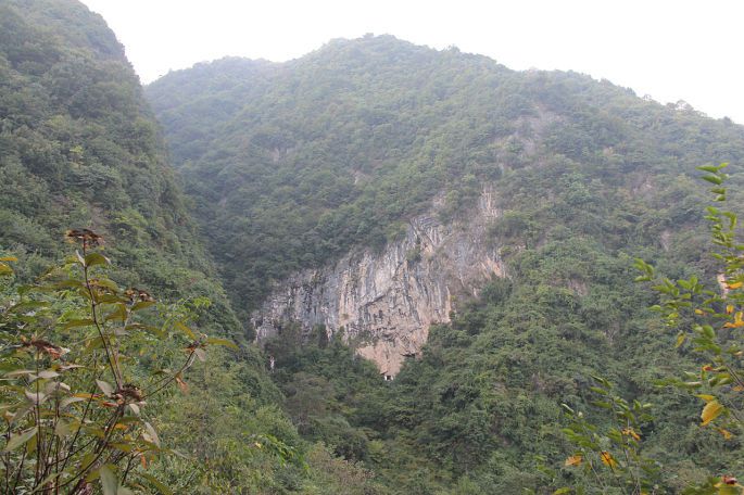 绕过山脊,就看到这面绝壁,汉江源洞口就在绝壁下方