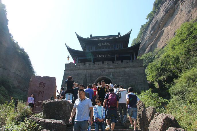 剑门关景区:门票100元。剑门蜀道古为金牛道,由明月峡栈道、千佛岩、皇泽寺、昭化古城、剑门关自北向南。可将车开到南门停车场,然后坐景区公交(票价4元)到梁山寺入口进入景区。一路下行,穿过天梯峡后往关楼。过关楼后都是平路,出来就是南门停车场。