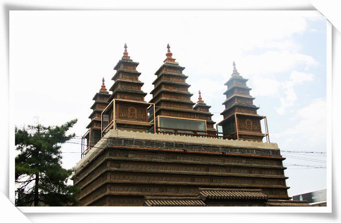 五塔寺在老城区东南部。因塔座上有五座方形舍利塔而名。塔座及五塔身上一层层布满了佛像,少不了精心设计和精雕细刻。我们在五塔寺的后街上就可以看到五塔敦实的身躯。