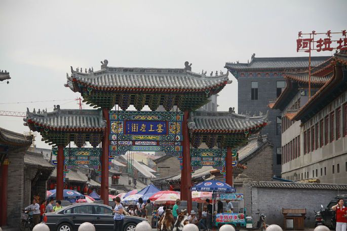 大召寺也在老城区。门票35元。这是一座藏传佛教寺院,具有浓重的藏传寺院风格。寺外八座白塔一字排开,颇有塔尔寺的感觉。虽然大殿经堂建筑风格和常见寺庙的一类,随处可见的经幡、精美的唐卡和忽烁的酥油灯又叙述着它的不同。殿堂里面,昏暗的灯光映照着各路菩萨和佛,看不明白,鼻子里却总是一种怪怪的味道,身体总有一种神秘的庄严萦绕着,不信佛,也敬佛。